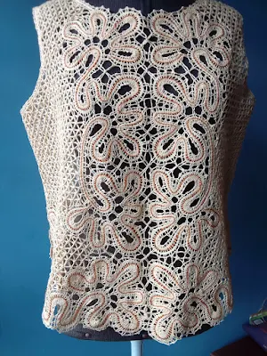 Blusa en renda de bilros, fio verão, sem mangas no tamanho M.